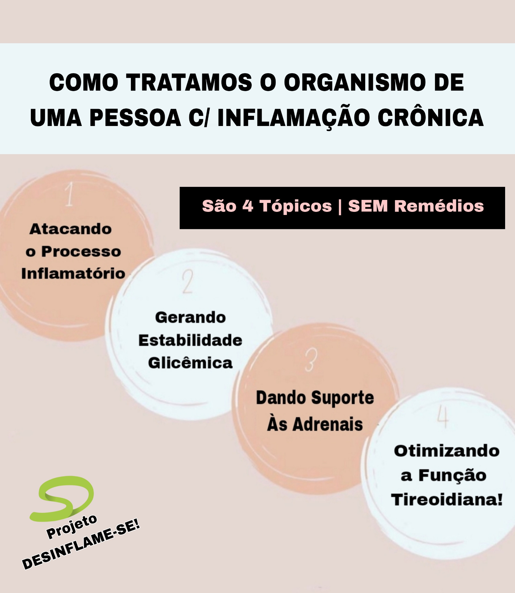 O primeiro passo para DESINFLAMAR seu Organismo é a alimentação. Em hipótese alguma deve ser utilizada restrição calórica, isto tende a piorar a condição Orgânica.